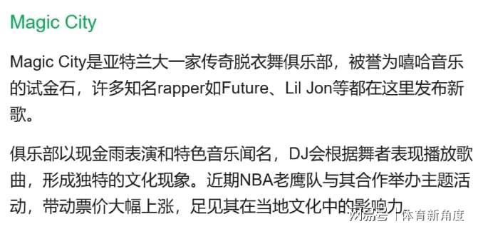 老鹰队官方传来重磅消息,3月16日那场对阵魔术的主场比赛,他们可是憋了个超级大招儿!他们把当天命名为“Magic City Monday”(魔术城星期一),还和当地大名鼎鼎、充满传奇色彩的脱衣舞俱乐部Magic City搞起了联动。据说啊,现场那表演精彩得不得了,就像一场视觉与听觉的盛而且呢,球队还特意邀请了俱乐部里的成员来录制播客,一起深入探讨这家俱乐部对当地文化产生的巨大影响,这话题肯定超有料!