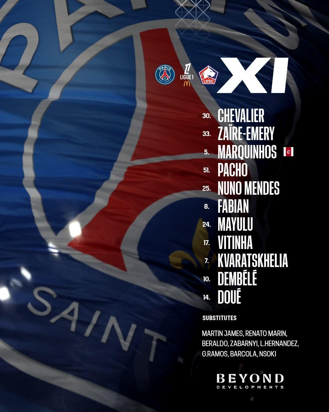北京时间1月17日04:00,法甲 第18轮,巴黎圣日耳曼主场迎战里尔,赛前双方球队首发名单公布如下: